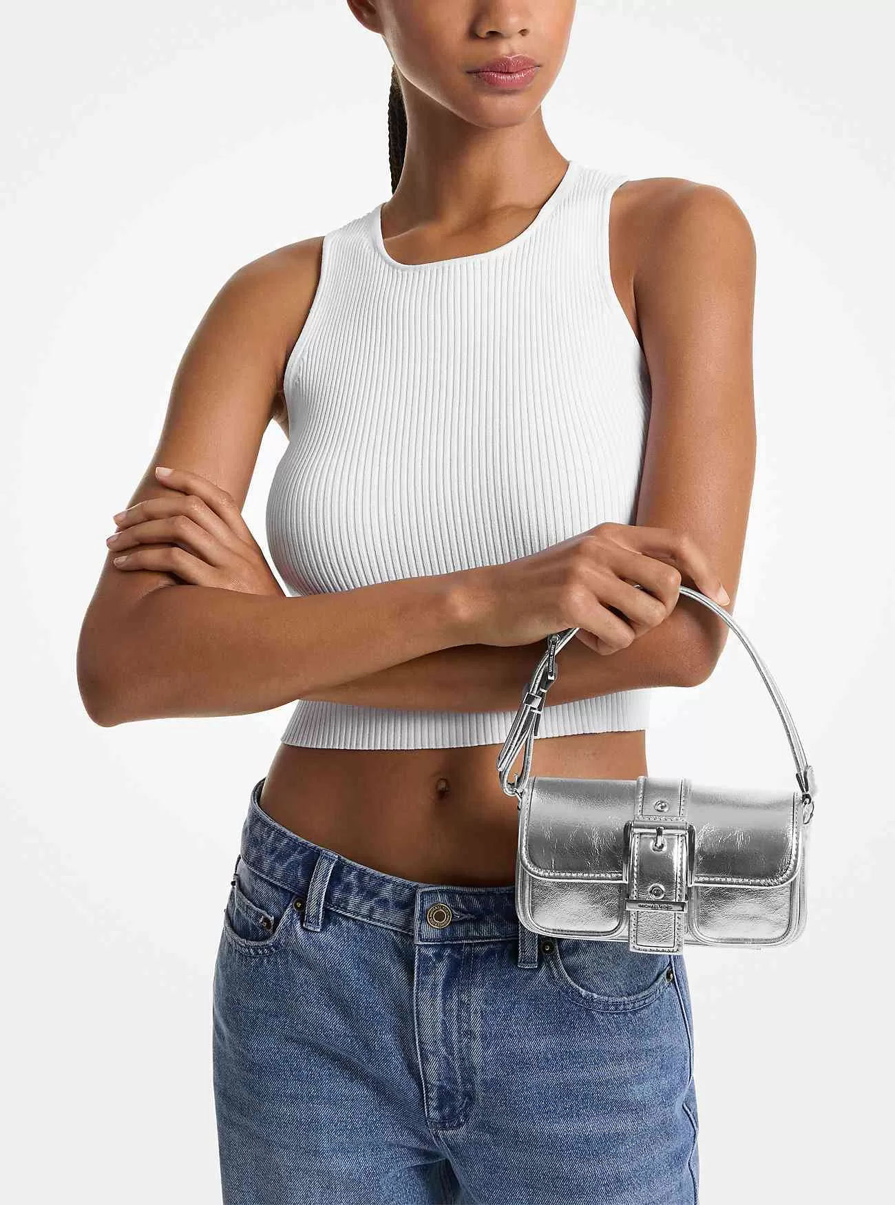 La borsa a tracolla Colby, moderna ma classica, evoca una sensibilità cool, ispirata a New York. Ora in un’elegante versione mini, presenta la stessa elegante silhouette rettangolare e l’audace dettaglio della fibbia del suo predecessore. Realizzato in pelle metallizzata lucida, è progettato per contenere solo gli elementi essenziali (telefono, portafoglio, chiavi, rossetto) ma vanta diversi scomparti esterni e interni per mantenere tutto organizzato.