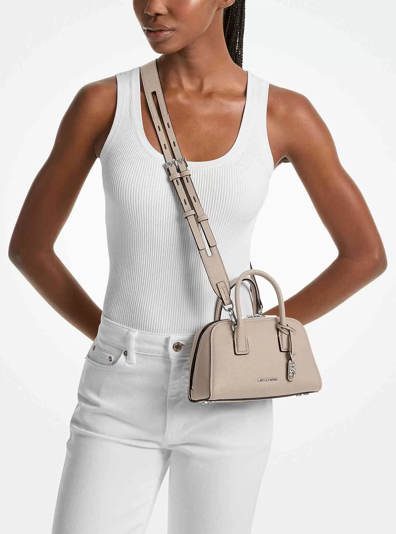 Una versione rimpicciolita della classica forma a borsa da bowling, la nostra tracolla Ashton è ancorata tramite manici superiori e un ampio cinturino con doppia fibbia per un tocco tattile. Il suo esterno in pelle martellata promette una durevolezza di lusso, mentre l’interno aperto lascia spazio a tutto l’essenziale.