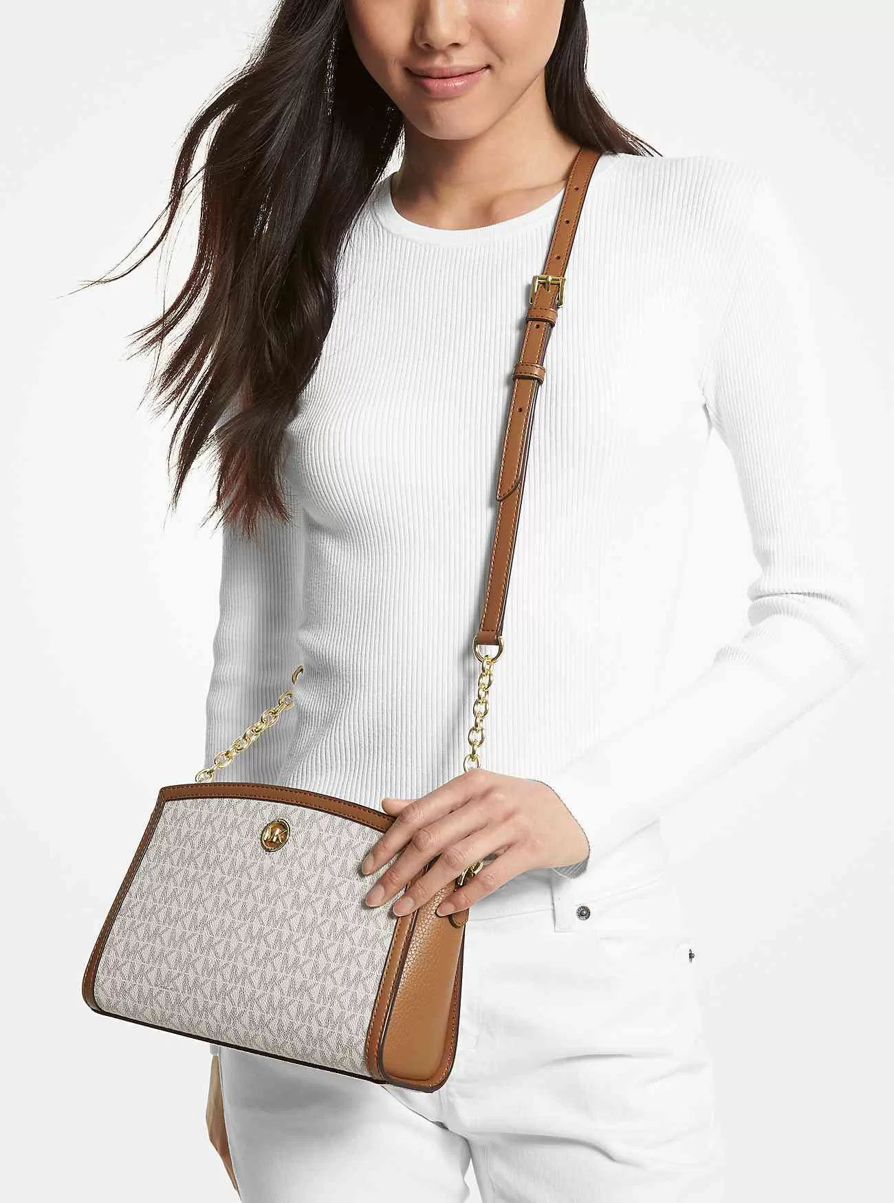Con la sua silhouette strutturata e l’hardware glamour, la nostra borsa a tracolla Chantal con finiture in pelle è un must in ogni guardaroba sofisticato. È realizzato con la stampa del logo Signature e presenta una tasca posteriore a bustina che riporterà in modo sicuro solo gli elementi essenziali. Trasportalo con i robusti manici superiori o tramite la tracolla staccabile nelle giornate più impegnative.