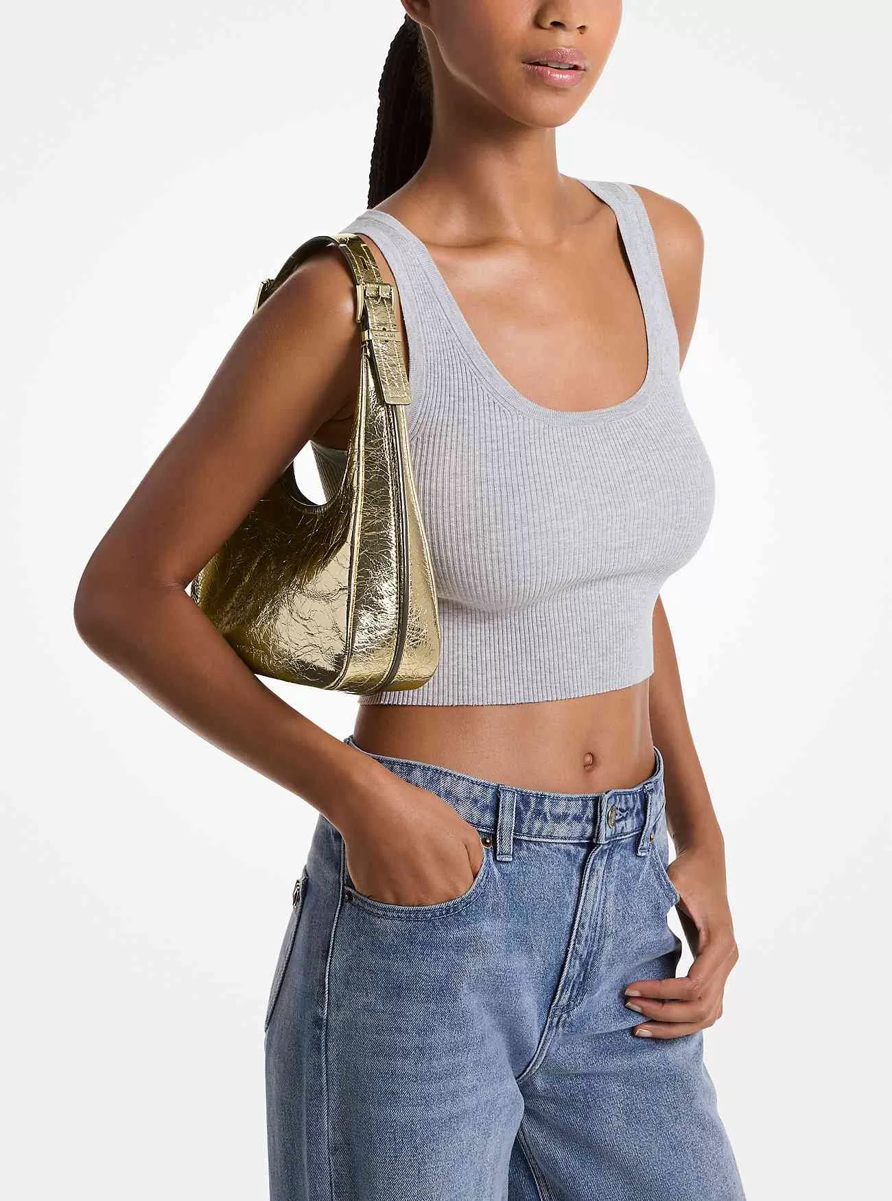 La borsa hobo metallizzata Nolita ha un aspetto rilassato ma raffinato in pelle craquelé con bordi strutturati che ne definiscono la forma. È dotata di tracolla regolabile con fibbie lucide e tasche interne per riporre i tuoi oggetti essenziali.