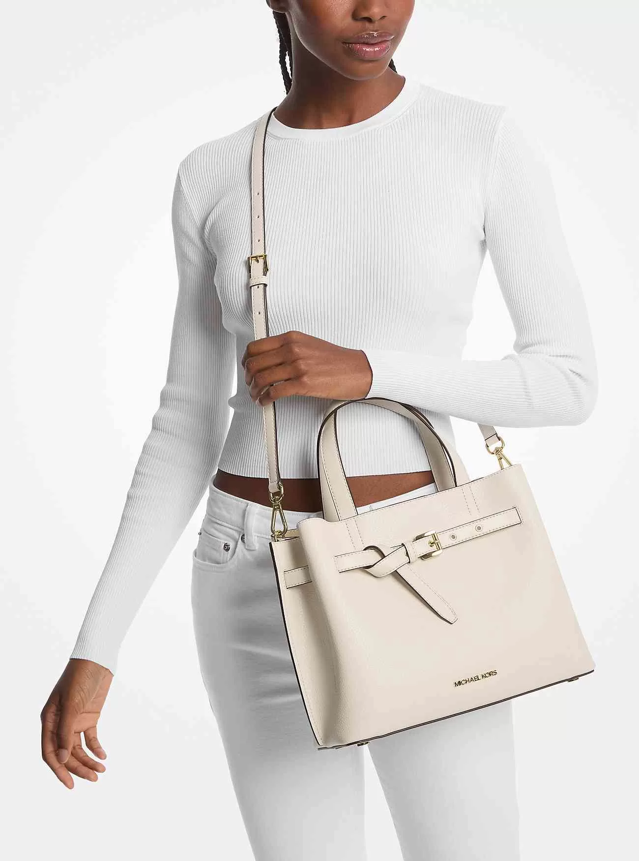Progettata per un glamour in movimento tutto il giorno, la nostra borsa Emilia mette in mostra la lavorazione artigianale della pelle martellata e gli elementi metallici color oro in una silhouette con cintura. Si apre per rivelare un interno spazioso con una tasca centrale con cerniera per una facile organizzazione. La tracolla opzionale la rende una scelta intelligente durante gli spostamenti.