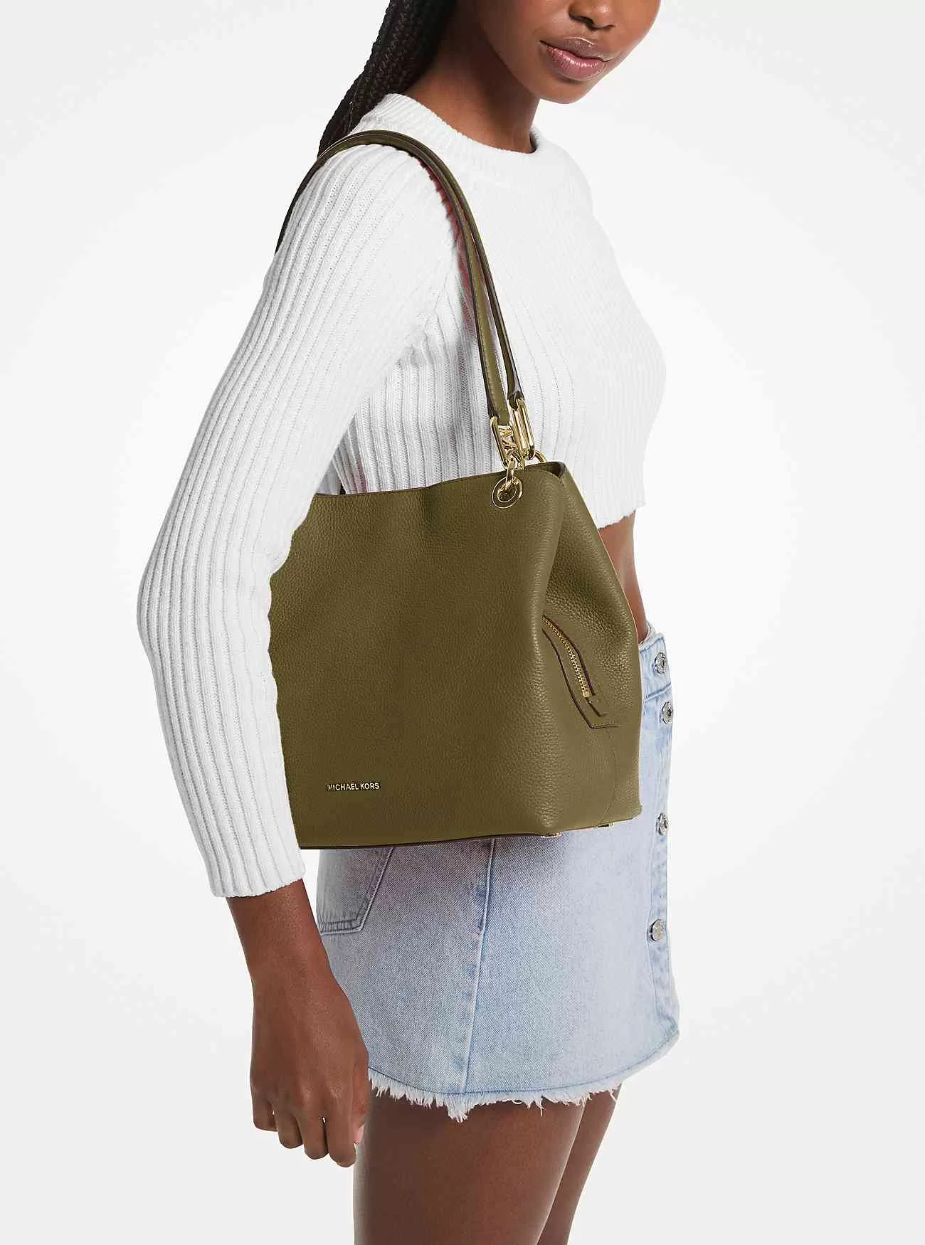 Con una silhouette rilassata e senza tempo che vanta tanto spazio per i tuoi oggetti essenziali, la borsa tote Kensington è la nostra scelta per l’eleganza quotidiana. È realizzato in pelle martellata e dettagliato con hardware color oro dall’aspetto lucido. La maniglia superiore scivola comodamente sopra la spalla, mentre lo scomparto centrale con cerniera è perfetto per tenere al sicuro il portafoglio e il telefono.