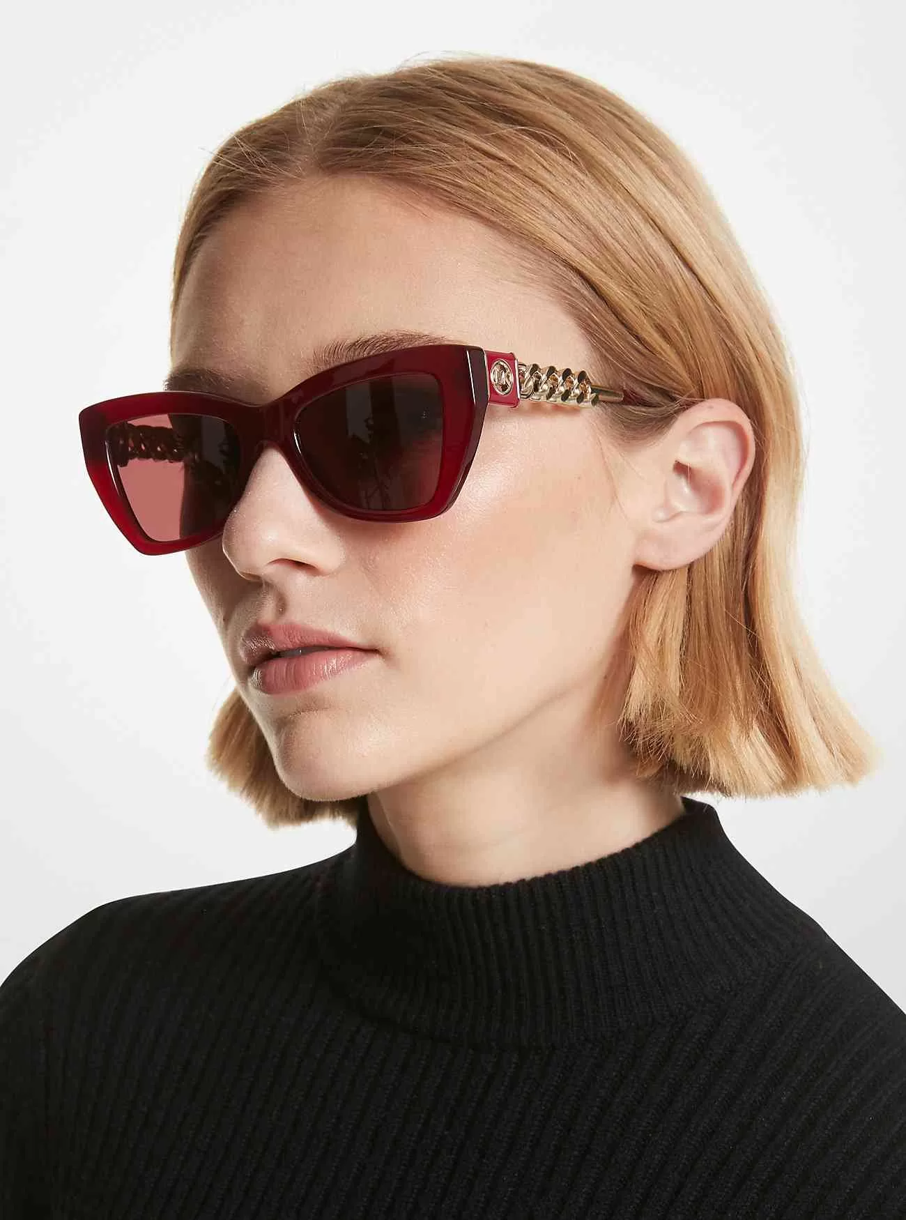Migliora il tuo outfit con i nostri occhiali da sole Montecito. Le montature spesse disegnate con una silhouette cat-eye rendono questo paio davvero unico, mentre i dettagli a catena sulle aste aggiungono un tocco di lucentezza. Audaci e glamour, queste tonalità divertenti sono fatte per risaltare.