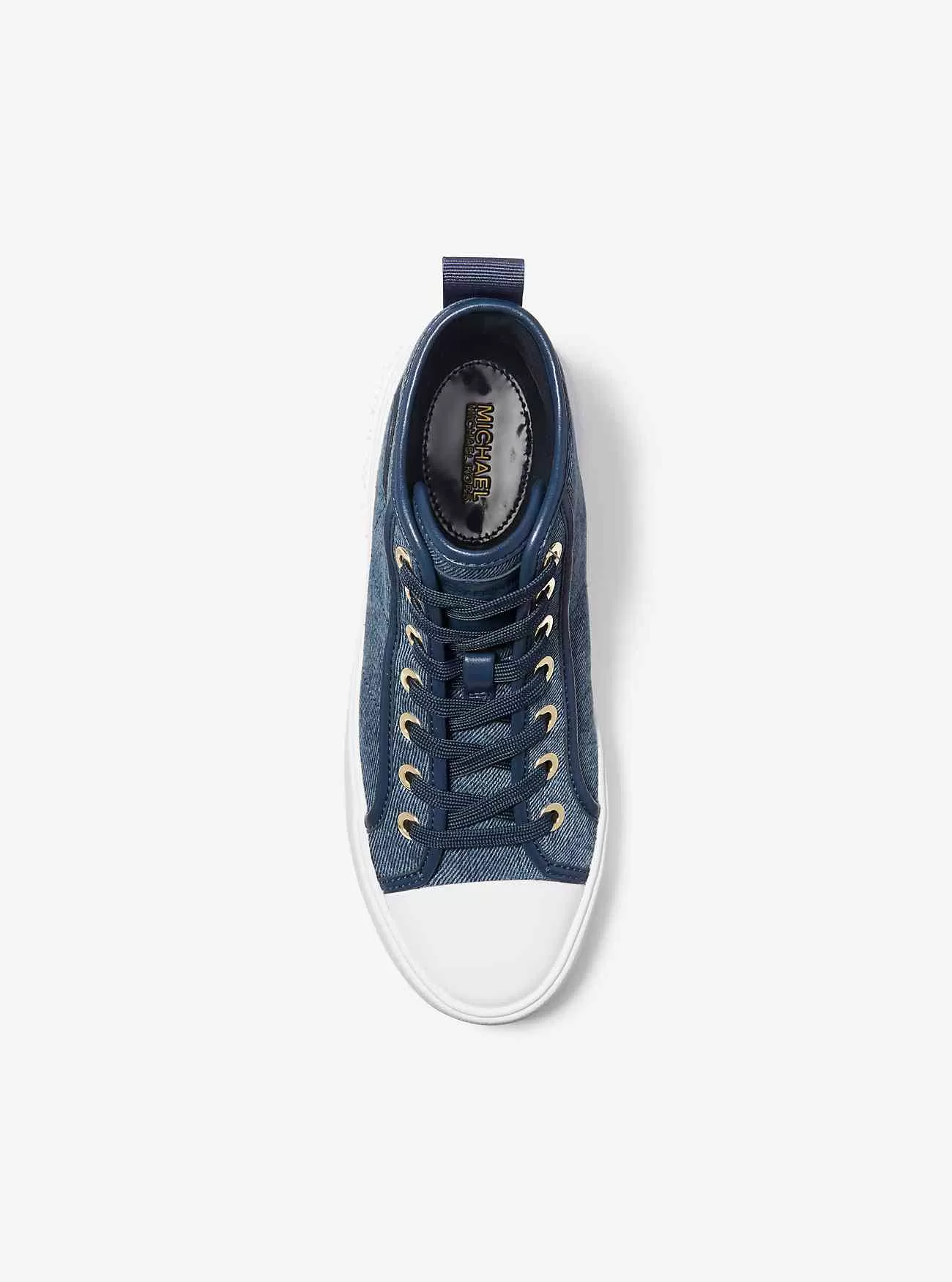 Le nostre sneakers Evy sono un classico moderno, quindi sei sicuro di indossare spesso questo paio alto. Sono realizzati in denim lavato con discreti dettagli impunturati per una sensazione aerodinamica. Indossalo con orli corti per sfoggiare il fascino MK alla caviglia.