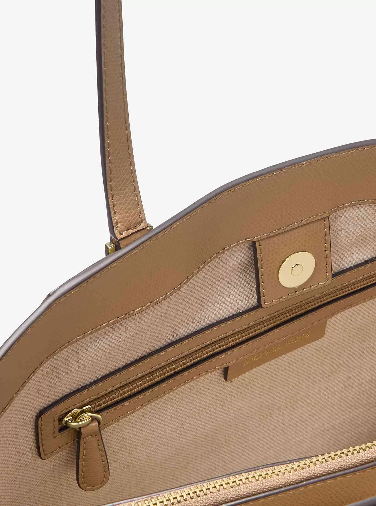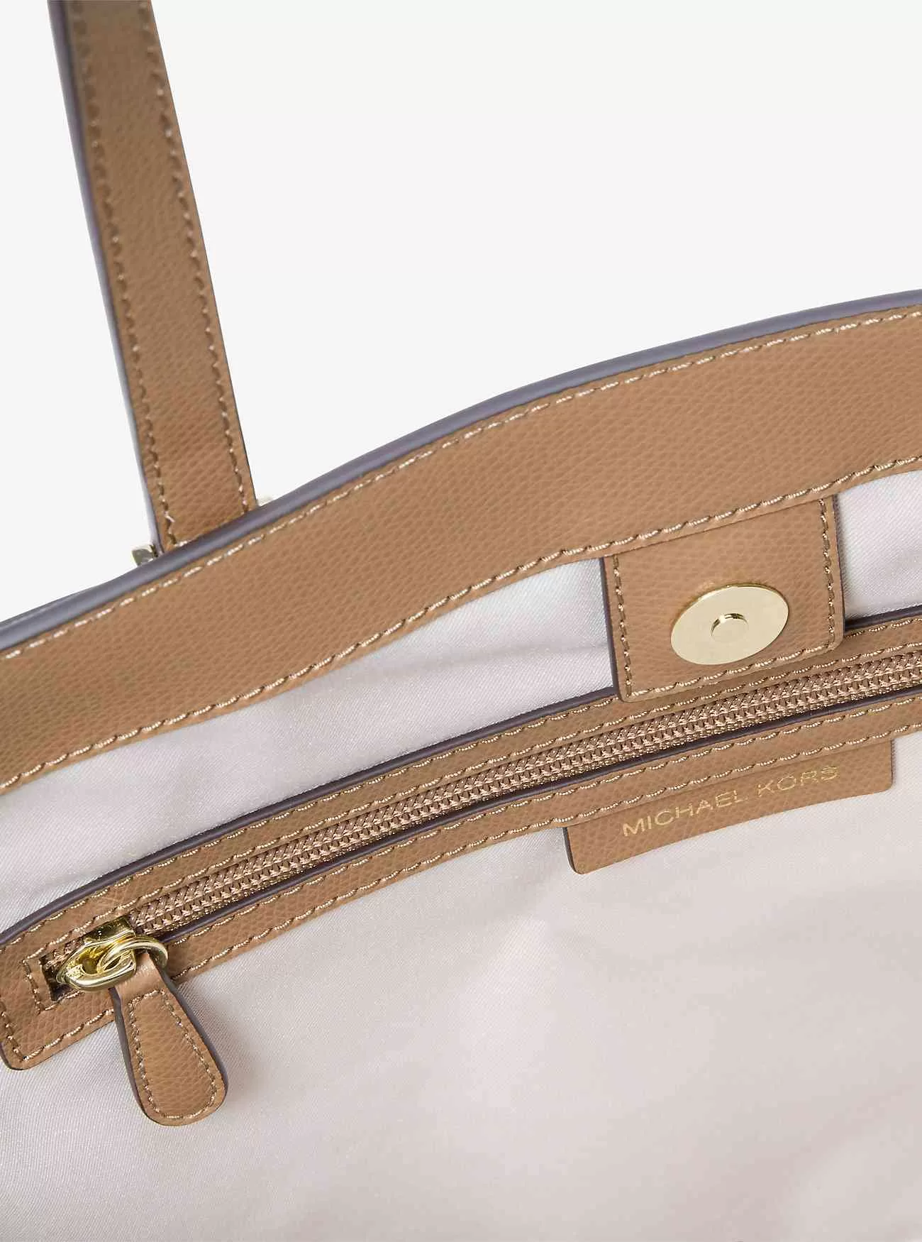 • Dettagli interni: tasca posteriore con zip, scomparto centrale con zip