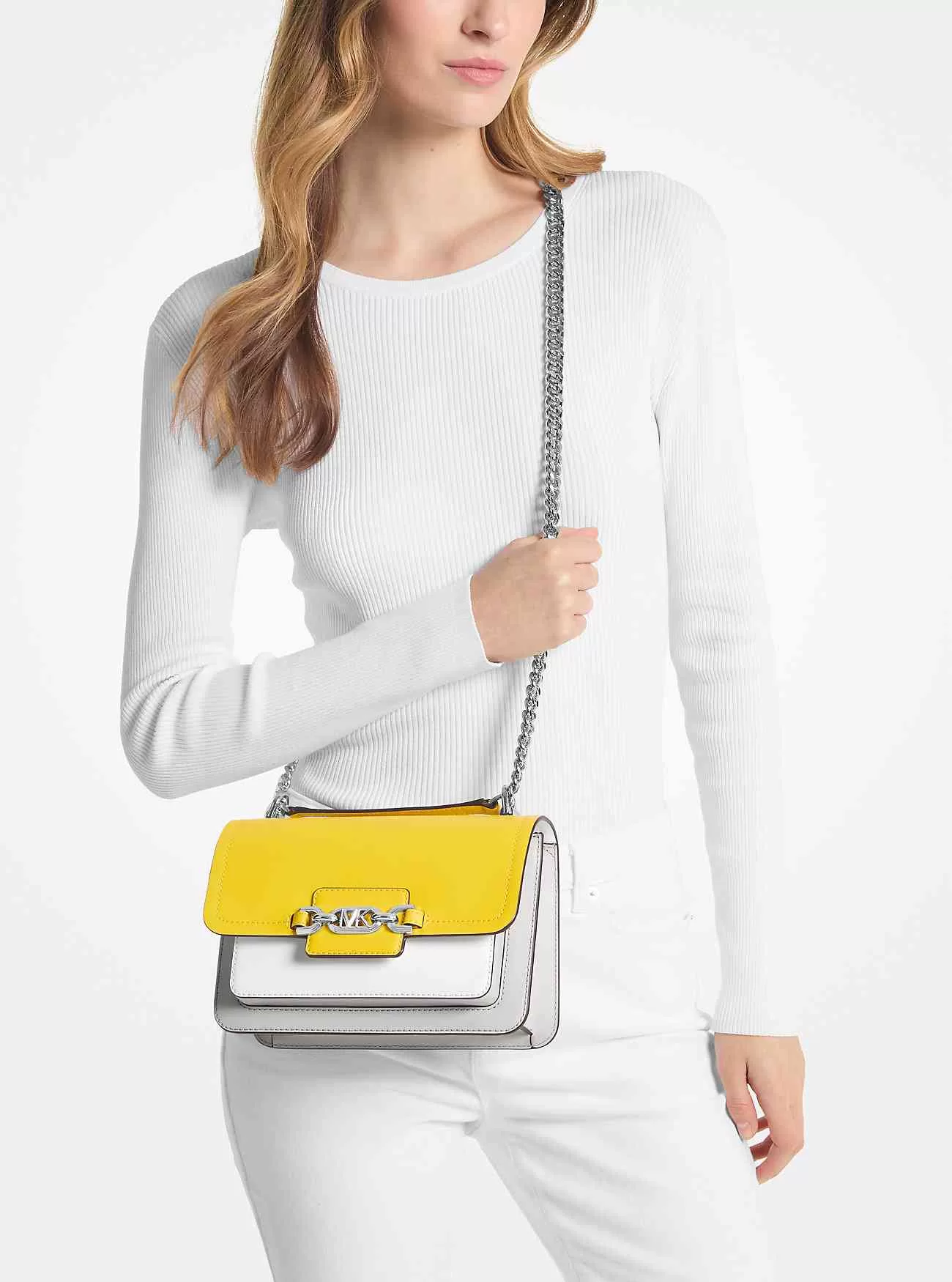 Un capo elegante e raffinato per tutti i giorni, questa borsa a tracolla Heather in pelle color block è progettata con una moderna silhouette ripiegabile con dettagli in metallo firmati per una finitura originale. Ha le dimensioni perfette per contenere gli oggetti essenziali quotidiani, con tasche interne a bustina per riporre il telefono e la custodia delle carte.