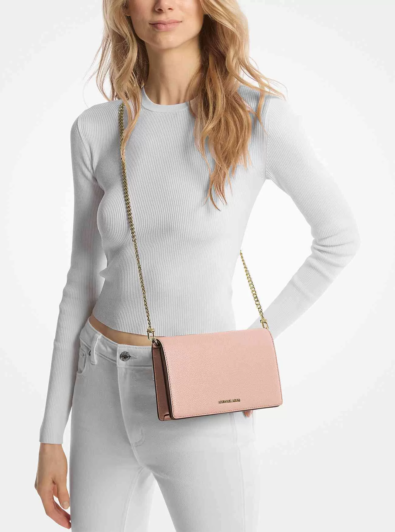 <p>Realizzata in pelle martellata e rifinita con una scintillante tracolla a catena, la tracolla Jet Set è una compagna di viaggio ideale. La silhouette sottile è di buone dimensioni per trasportare i tuoi oggetti essenziali di tutti i giorni e presenta uno scomparto interno con cerniera e molteplici slot per carte per tenerti organizzato. Rimuovi la tracolla per portarla come una pochette chic.<br></p><p><br></p>