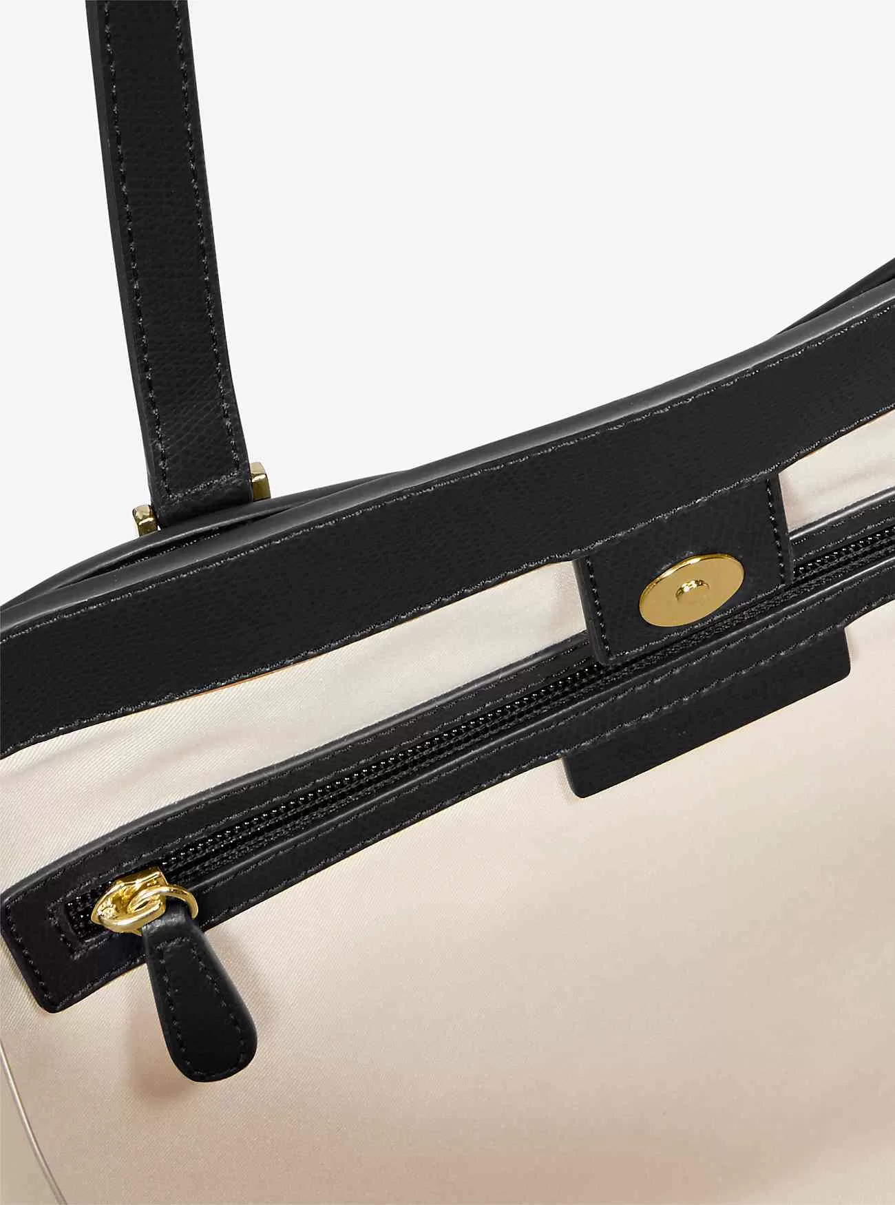 La borsa Taryn è un capo elegante per i giorni feriali, i fine settimana e ogni momento intermedio. Realizzata in morbida pelle, questa borsa strutturata presenta cuciture a trapezio e un ciondolo con lucchetto staccabile. Si apre per rivelare un interno spazioso, completo di tasche laterali e uno scomparto centrale per il tuo tablet o oggetti di valore.