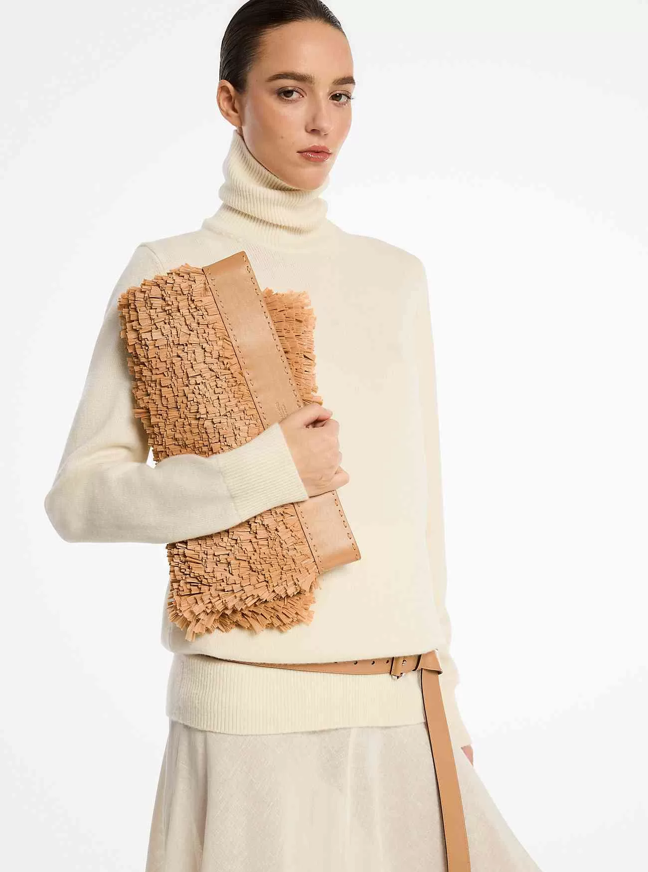 Realizzata in Italia con una combinazione di pelle cucita a mano e morbide frange testurizzate, la pochette Sorrento ha fatto il suo debutto sulla passerella Primavera/Estate 2025. Progettato con un profilo sottile e ripiegabile, questo accessorio di tendenza riposa comodamente sotto il braccio e presenta una tasca interna con chiusura a zip. Prendi una pagina dal libro di Michael e indossala sia con abiti stagionali che con maglie grosse.
