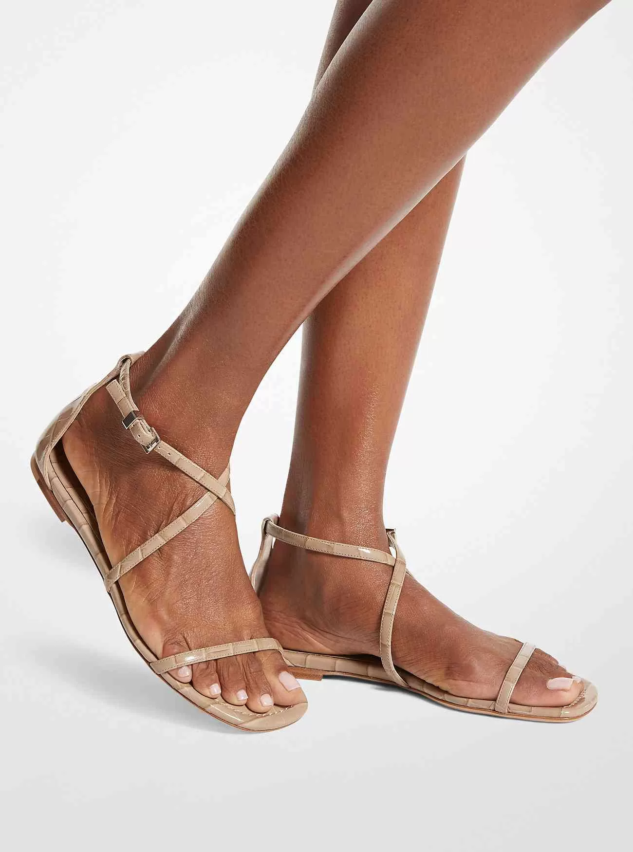 Il nostro sandalo Polly ha una silhouette minimalista che funge da complemento perfetto ai look da resort della stagione. Sottili cinturini incrociati sul davanti definiscono questo modello in pelle goffrata di coccodrillo, che poggia su un tacco appena accennato per una vestibilità comoda. Abbina il tuo con un abito scollato per emanare un fascino disinvolto.
