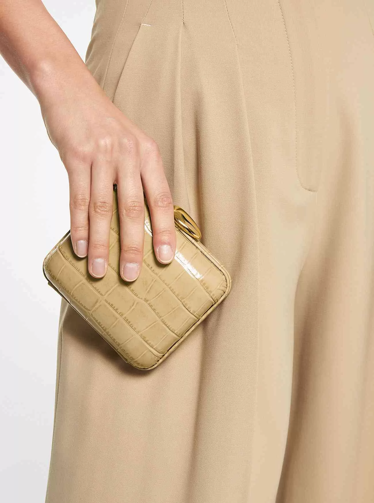 L’apice dello stile in un piccolo formato, la nostra mini minaudière Tina ha fatto il suo debutto sulla passerella Primavera/Estate 2023. Caratterizzato da un’elegante chiusura superiore a forma di pietra, è realizzato in una straordinaria pelle di coccodrillo goffrata e progettato con una silhouette strutturata per una finitura elegante e minimalista. Un cinturino a catena lucido consente di trasportarlo in diversi modi, rendendolo il compagno perfetto per le serate fuori. Prodotto in Italia.