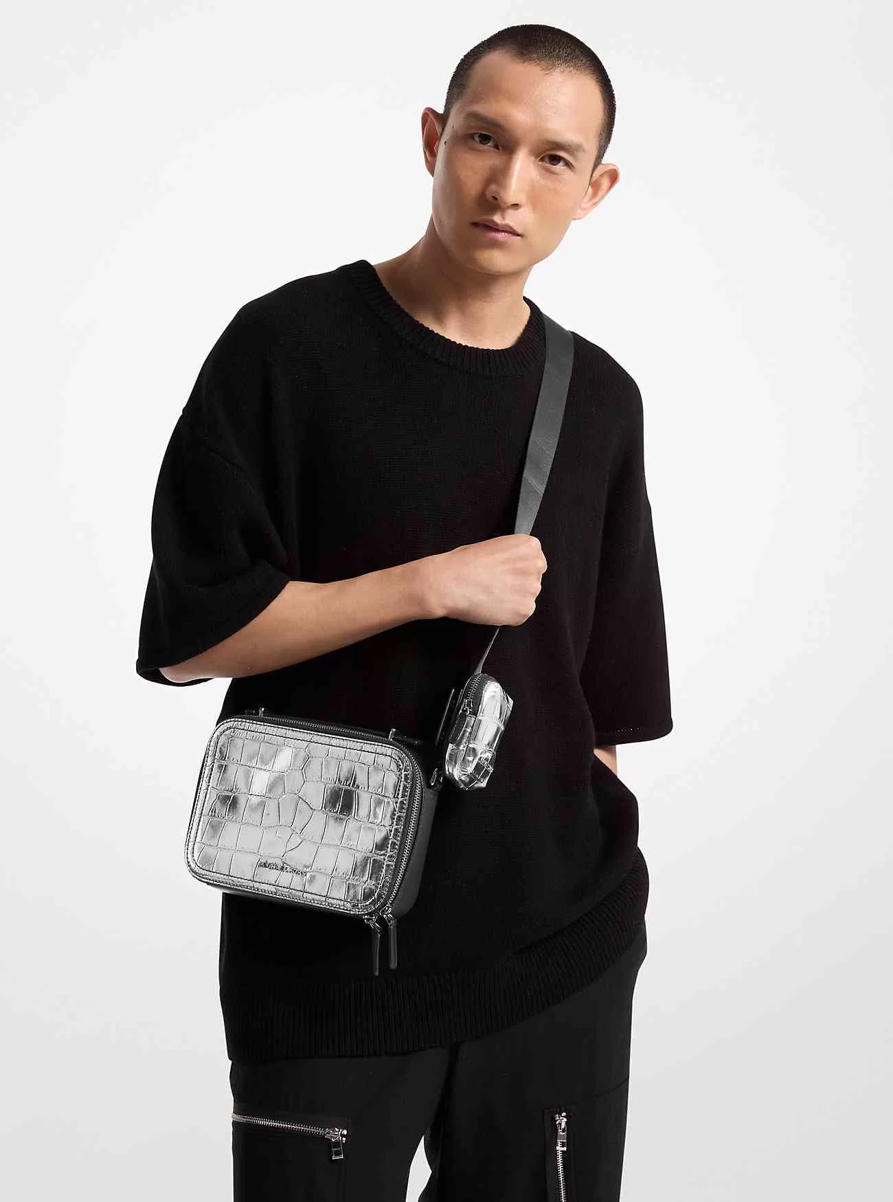 Che tu stia viaggiando o soggiornando in zona, la nostra borsa a tracolla Hudson è all’altezza del compito. È realizzato in pelle metallizzata goffrata di coccodrillo in una silhouette morbidamente strutturata con una doppia chiusura con zip per riporlo in sicurezza. Aggancia la custodia del telefono in dotazione alla cinghia regolabile per tenere lo smartphone a portata di mano.